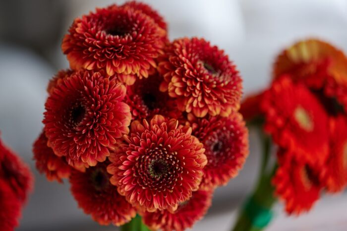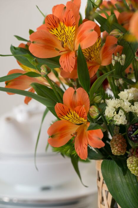 Denk aan diepe oranje Gerbera’s, geel/oranje Alstroemeria’s of bordeauxrode of mysterieus paarse Dianthus Sparkz®. Combineer ze met droogbloemen, siergrassen of zelfs kleine pompoentjes voor een bloemstuk met een spooky touch. Perfect voor op de eettafel, in de hal of als blikvanger bij de voordeur.
