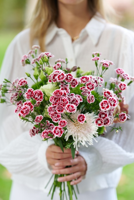 Dianthus Sparkz® Raffine Saba is een kleine, maar opvallende bloem die elk boeket direct verrijkt. Haar krachtig gekleurde bloemetjes geven een frisse en speelse touch, ideaal voor creatieve arrangementen of als accent in grotere boeketten. Saba is een echte blikvanger en voegt energie toe aan elk bloemwerk.