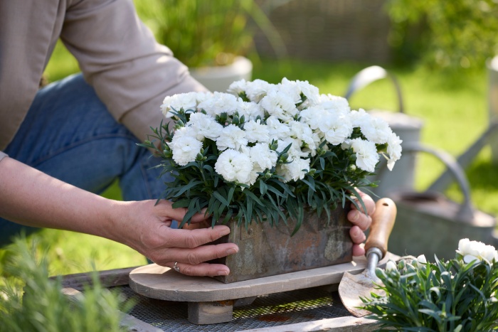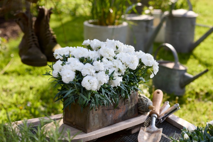Dianthus Sunflor® Emily is een vrolijke, compacte anjer die je wekenlang trakteert op frisse, kleurrijke bloemen. Ze doet het geweldig in potten, op je terras of in de border. Emily groeit netjes, blijft mooi vol en geeft je tuin of balkon een charmante, zomerse uitstraling.