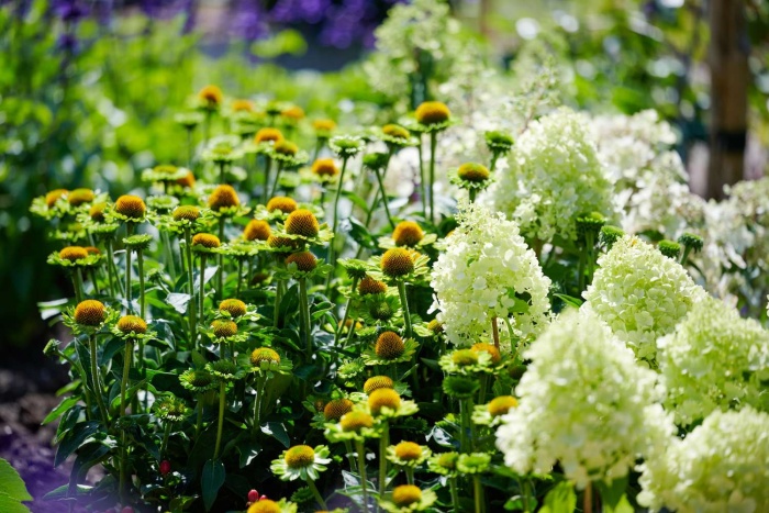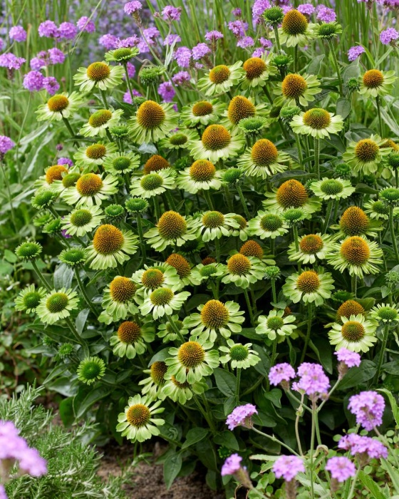 Echinacea MOOODZ® Jealousy is een unieke verschijning in de tuin. Met haar opvallende groene bloemen en prachtige platte bloemvorm creëert ze een indrukwekkend bloemenspektakel. Deze plant is niet alleen een lust voor het oog, maar ook sterk en goed vertakt, waardoor ze een volle, rijke uitstraling heeft. Perfect om jouw tuin een exclusieve en natuurlijke look te geven.