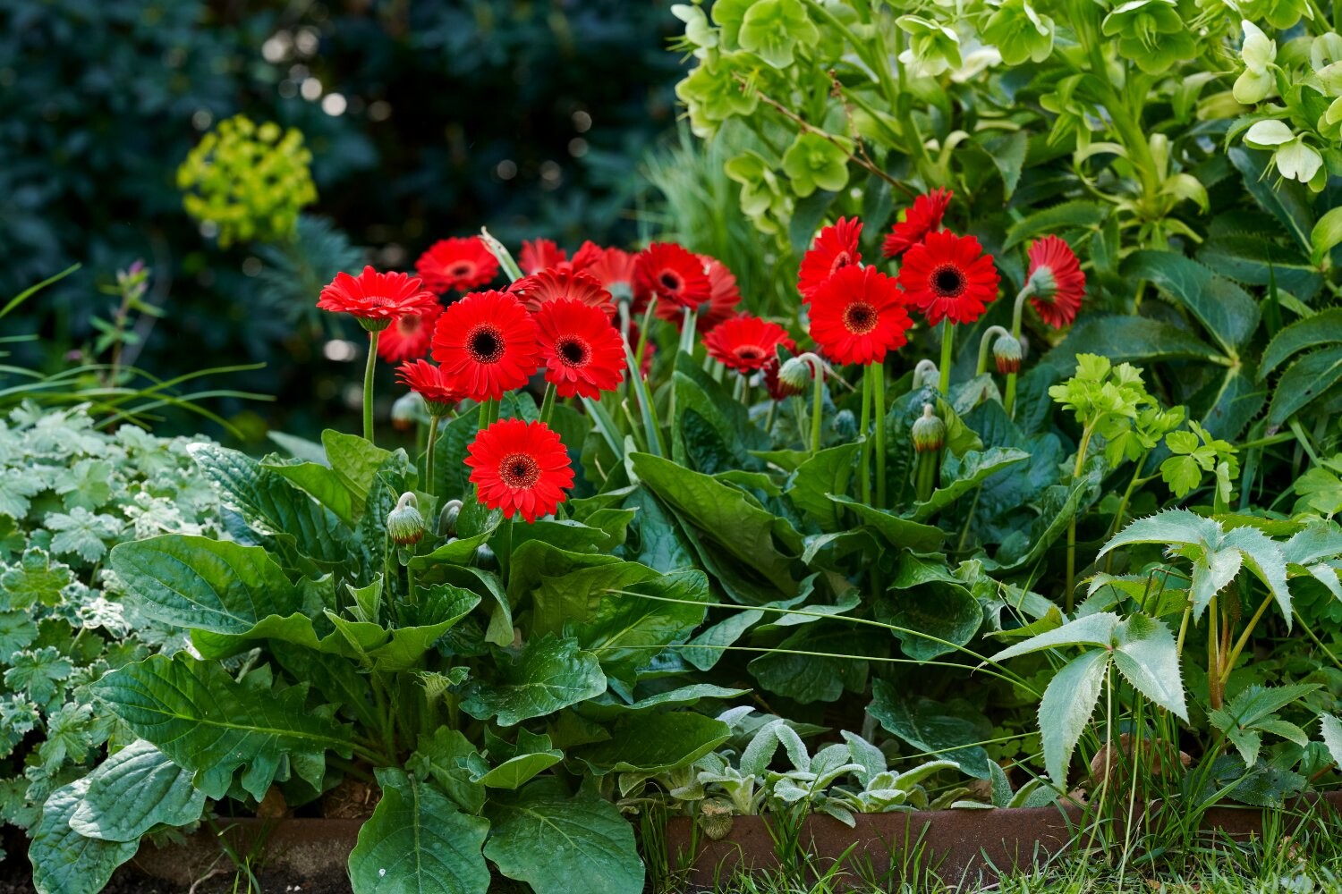 Verbazingwekkend kleurcontrast tussen levendige bloemen en extra donker blad!