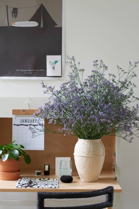Arizona Blue brengt een frisse en elegante uitstraling in je bloemwerk. Met zijn diep paarsblauwe tint en luchtige bloei geeft deze Limonium-variëteit een moderne en natuurlijke look. Perfect om volume en textuur toe te voegen aan boeketten, maar ook schitterend als stand-alone bloem of in kleine vaasjes voor een subtiele decoratie.